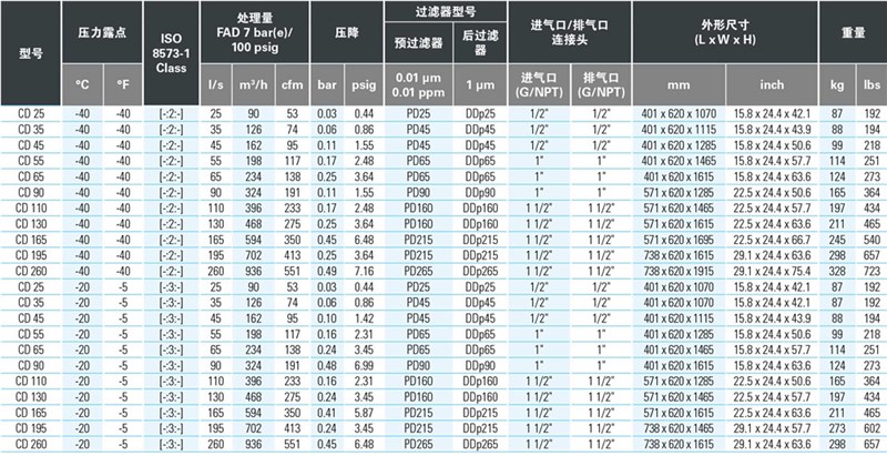 完整的雙塔式吸附式空氣干燥機和轉鼓干燥機系列,適合各種工業應用場合。