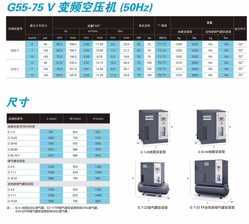 阿特拉斯·科普柯新型的G 4-90/G 55-75 V系列秉承阿特拉斯·科普柯一貫的客戶承諾,為廣大中小型用戶提供強動力、高可靠性的螺桿式壓縮機。